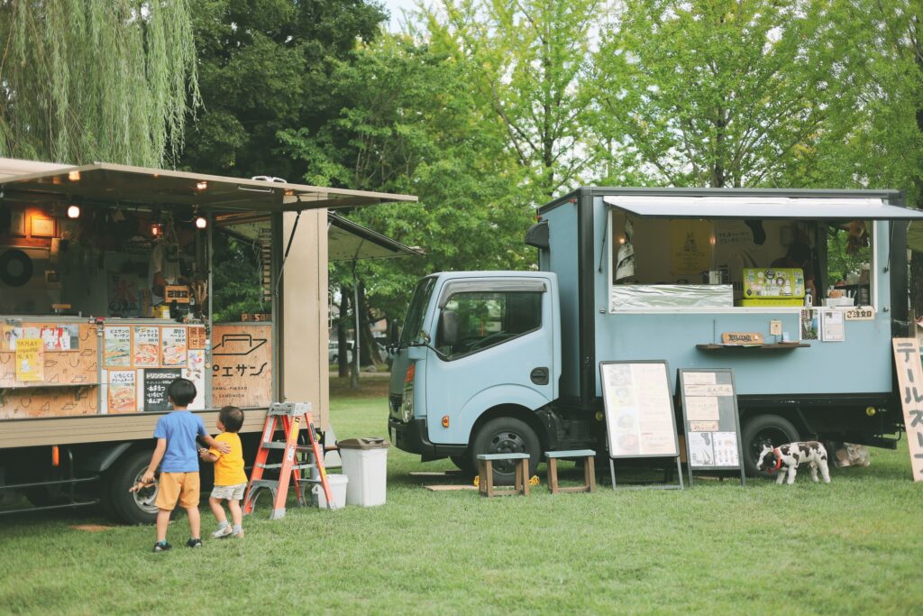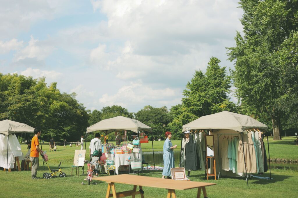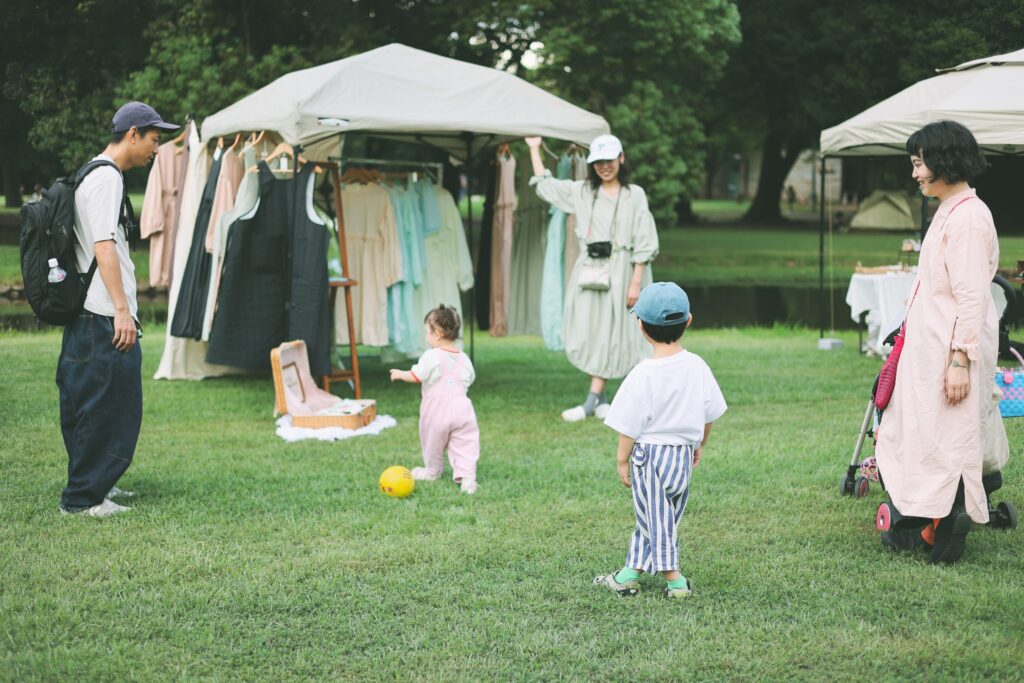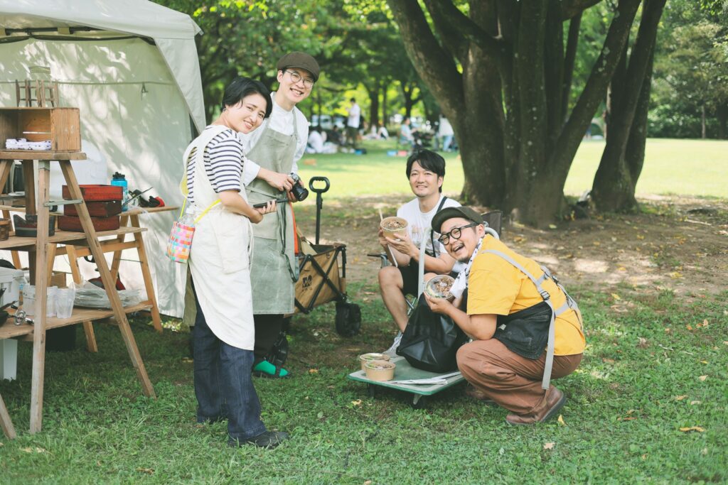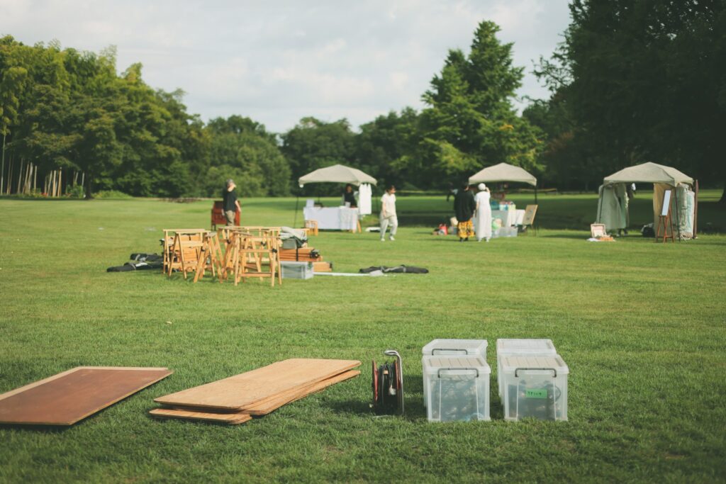 出店者さんも続々と到着。今回は暮らし委員メンバーやご縁のある方々から16店舗に出店していただきました。フードやドリンクはもちろん、古道具に古本、ワンピース、駄菓子、モルック大会…と個性豊かなお店が並びます。(出店者さんの一覧はこちら)