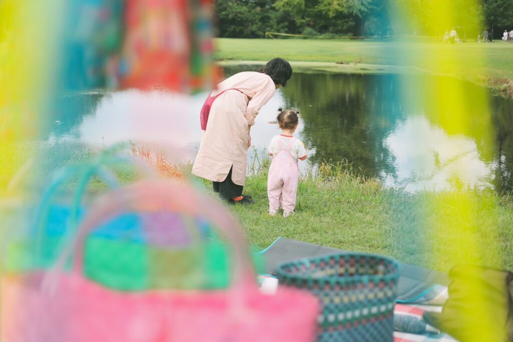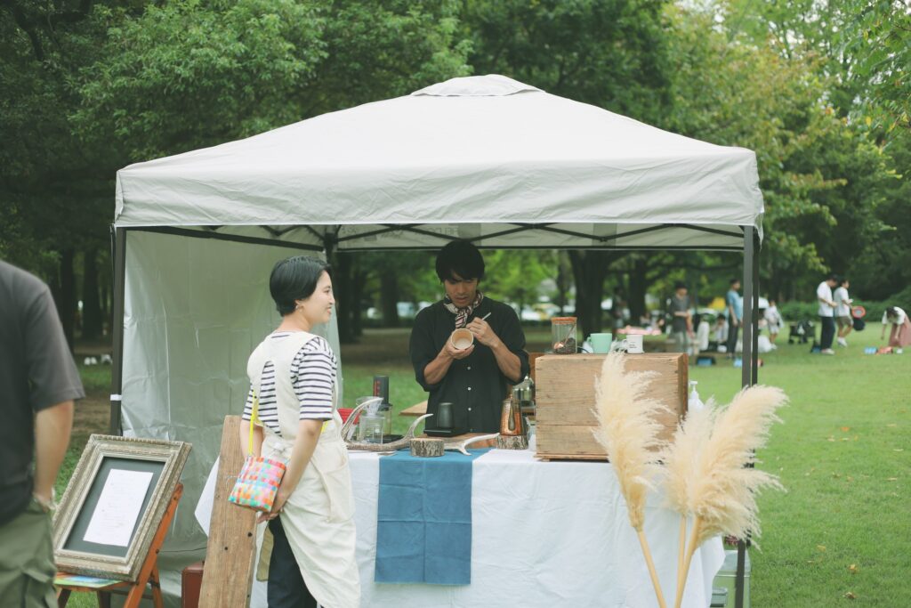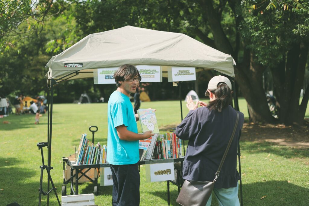 11時になり、周年祭マルシェがスタート!楽しみに来てくださった方はもちろん、たまたま公園に遊びにやって来たみなさんも興味津々にのぞいてくださいました。出店者さんとお客さんがゆっくり話していたり、大人も子供ものびのび楽しんでいたり、おおらかな空気感は手作りの小さなマルシェならでは。学びの森のゆったりした雰囲気も相まって穏やかで心地よい時間が流れます。