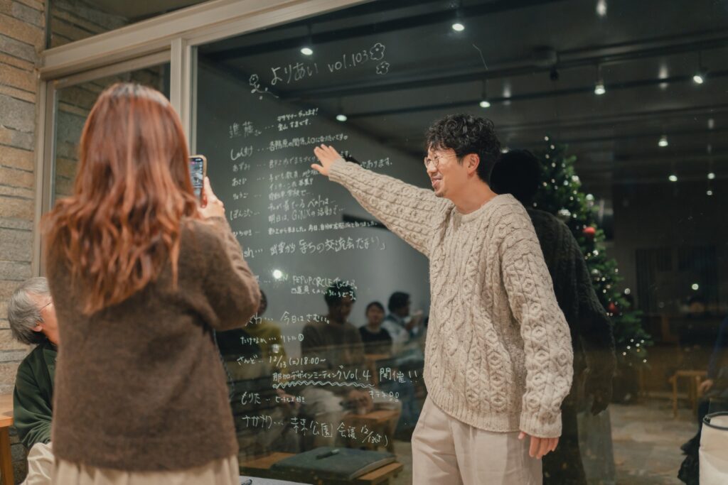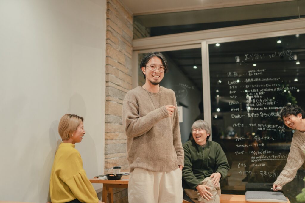 このKAKAMIGAHARA STANDにも今夜初めて入ったというモリタさん。モリタさんは「今年中に自分の殻を破りたい」と心に決め、思い切って【寄り合い】に参加した、と語ります。シンドーさんも「旅と同じで、やれる時にやらないとね」と言葉を添えます。