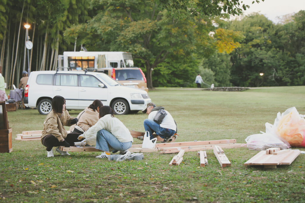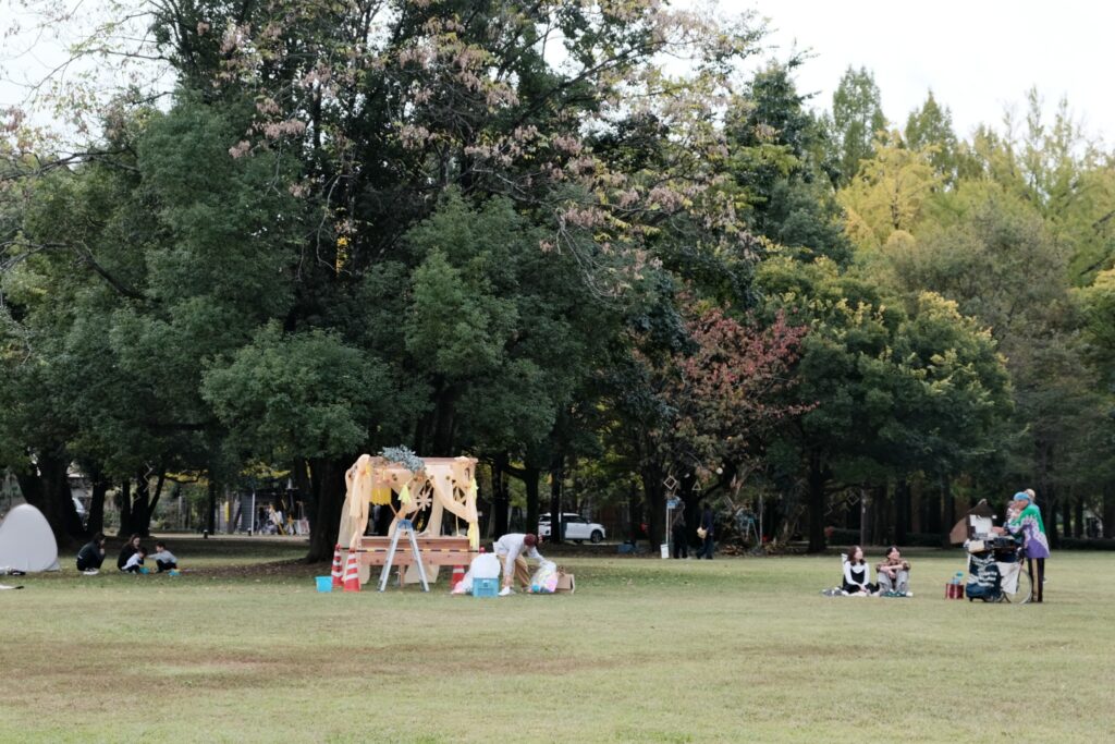 中部学院大学・短期大学部の学びの森フェスティバル、各務野市民大茶会、BALLOON王国、焚火ナイトなど、学びの森や市民公園の周辺エリアには、様々な施設や団体の方々が日常的に活動しています。その皆さんも、11月3日はこのエリアを一緒に盛り上げる一員として、暮らし委員会だけでは生み出せない、コンテンツが行われました!