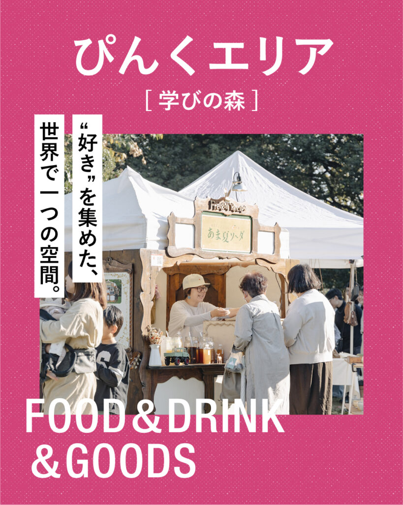 「自分の暮らしにプラスしたくなる新たな出会いの場」のコンセプトに、学びの森・市民公園に、フードや雑貨や洋服、音楽、トークイベントにワークショップなど、いろんなお店が岐阜県内にとどまらず、愛知や三重、遠いところは富山や京都など、全国各地から個性溢れるお店やゲストが各務原に集まります。