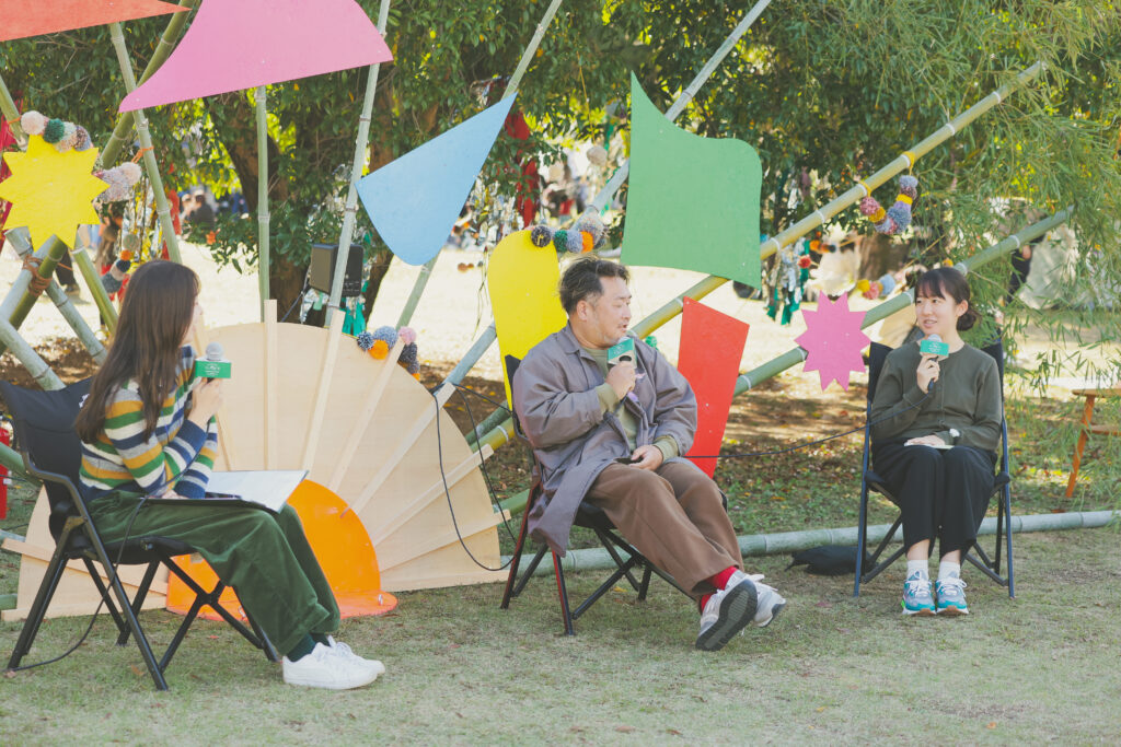 みどりエリアからは「せっかく全国各地から各務原まではるばる来てくれたから直接お話を聞きたい!」ということで、なんとも贅沢な組み合わせで、デザインやモノや地域などといった視点からお話を伺いました。また、昨年に引き続き、あおエリアからカクカクブックスさん企画の本にまつわるトークイベントを開催しました!