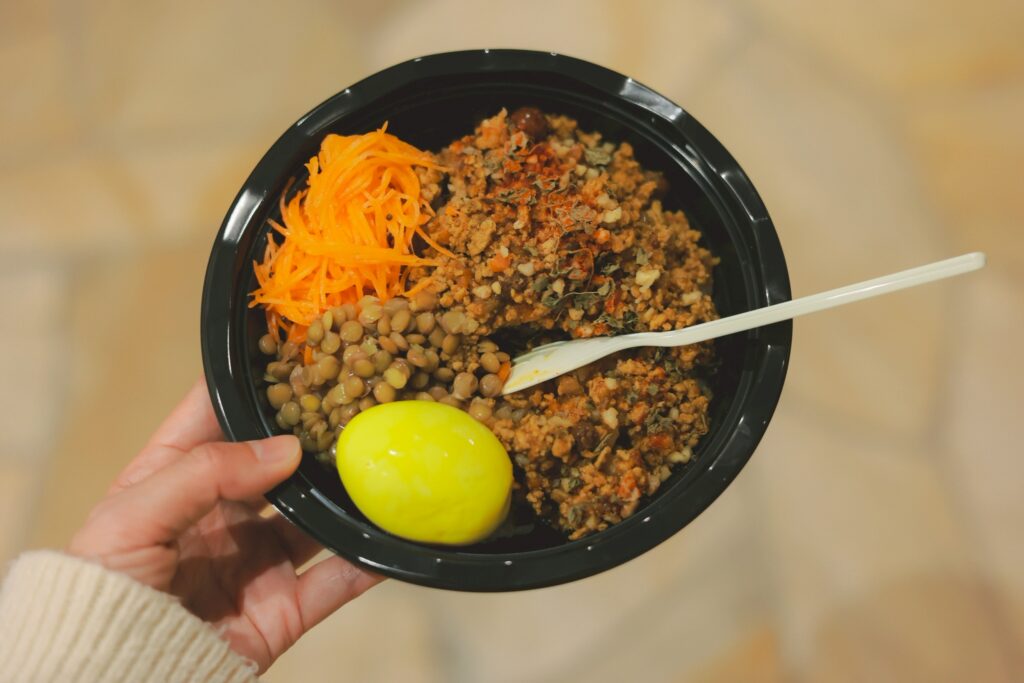 途中参加・退出自由、ゆるやかな交流会。空と月さんの【寄り合い】ごはんを食べながらはもちろん、テイクアウトもOKです。今夜は大人気のキーマカレー。